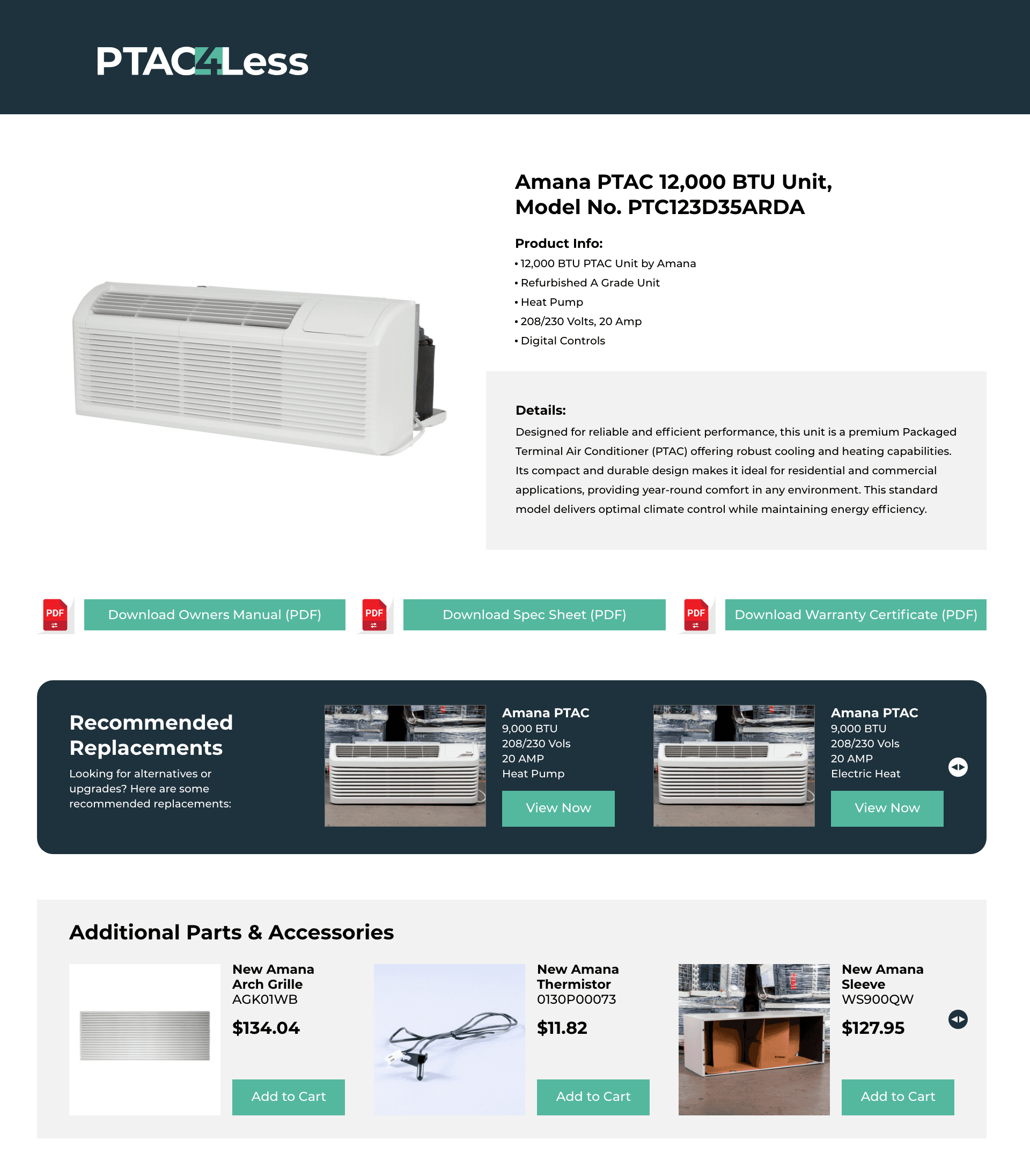 I created a wireframe for a new layout for PTAC4Less product pages designed to increase upsells for parts and accessories. The redesign strategically positioned related products and included a recommended replacements section to guide customers toward complementary purchases and drive additional revenue.